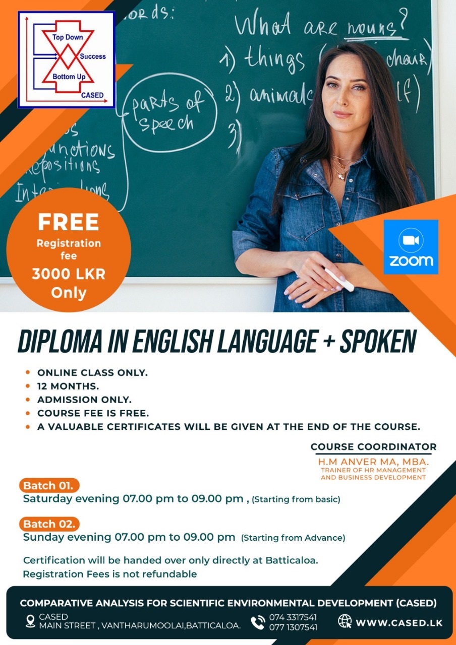 The Diploma in English Language Skills is a 12-month online program meticulously designed for Tamil-speaking individuals and designed to deliver via Tamil language seeking to enhance their English language abilities. This course aims to bridge linguistic gaps, fostering a more cohesive, inclusive, and harmonious society in Sri Lanka. By improving proficiency in English, students can achieve personal and professional growth while contributing to a shared linguistic platform.