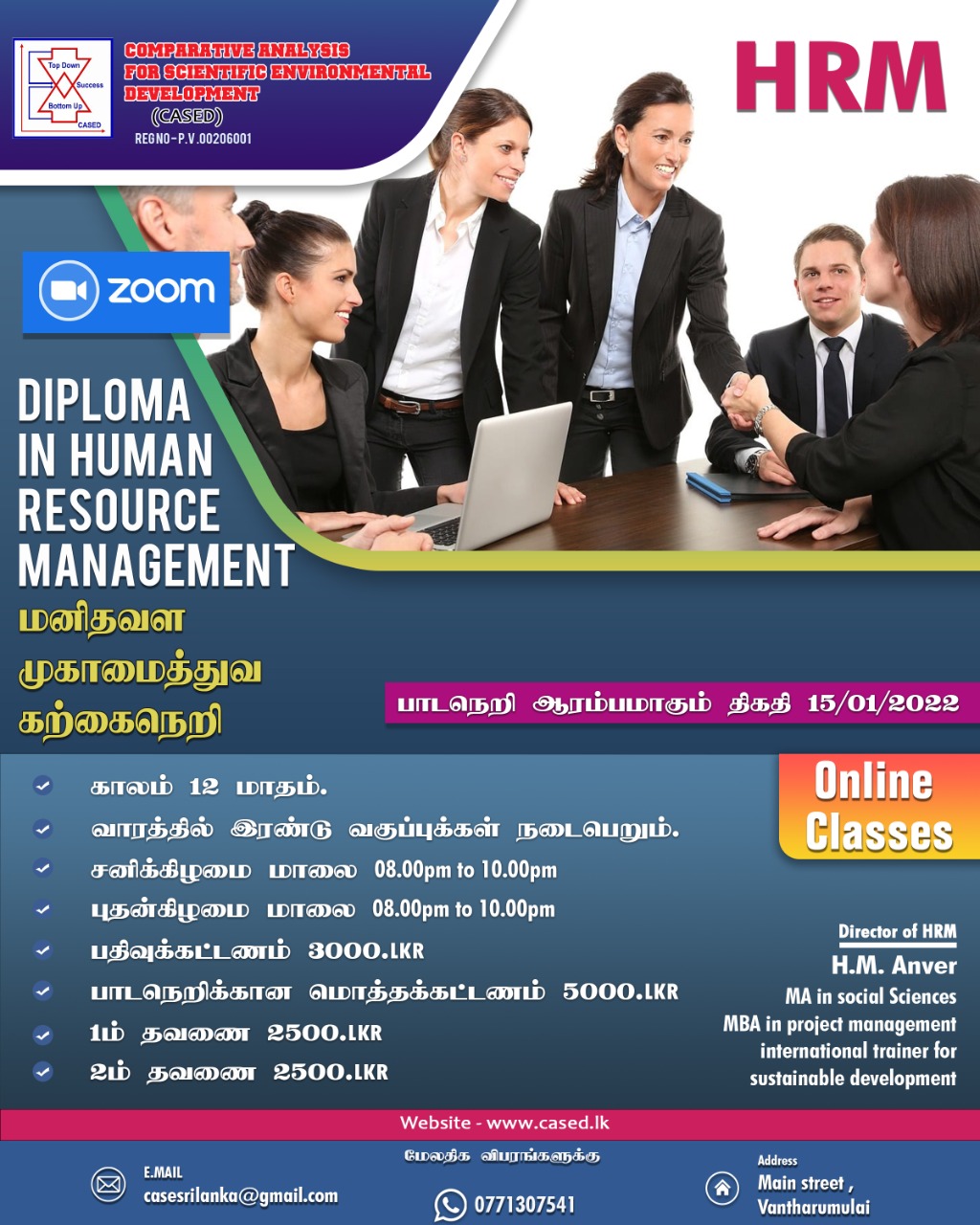 The Diploma in Human Resource Management is a meticulously designed 12-month program tailored to equip students with essential HR skills and knowledge. Offered entirely online via Zoom, this course provides a comprehensive education in core HR principles and practices, preparing participants for effective roles within HR departments. The Diploma in Human Resource Management designed for Tamil-speaking individuals and designed to deliver via Tamil language to provide students with a thorough understanding of HR practices, preparing them for successful careers in the field. With a flexible online curriculum and practical application opportunities,